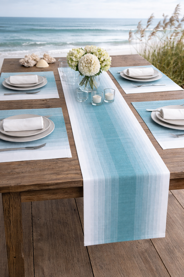 Teal Ombre Woven Kitchen Table Runner